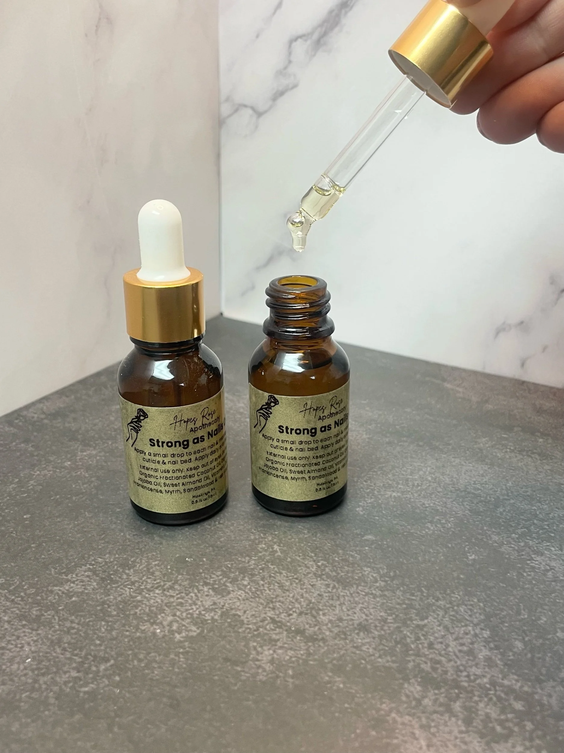 Apply a small drop to each nail and massage into the cuticle and nail bed. Apply daily or as needed.
